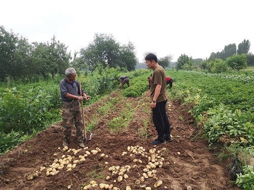 清风网讯(拜城县税务局驻村工作队:张杰)6月24日,拜城县亚吐尔乡英兰干村科技副职张先兵来到村民玉山·达吾提的地里挖出了今年的第一个土豆。玉山·达吾提开心的对工作队员说道:“以前我每年只会种些普通农作物,比如小麦玉米这些,家里的地不多种这些收入也不高,去年科技副职张先兵带着我们种蔬菜,我家里这片地种的土豆,比去年每亩增产了两三千块,以后我要多向村里的科技副职学习种植蔬菜的技术,以后日子会越过越好的。”