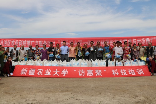 新疆农业大学农学院教师汤秋香教授、赵强副教授、驻村工作队队员安尼瓦尔·库尔班副教授,联合北京草根创新农业科技有限公司、新疆惠尔农业集团股份有限公司的技术人员赴村开展科技培训,他们深入田间地头,了解棉花种植方面存在的问题,从农作物的不同生长发育期、田间管理、病虫害防治技术等方面,为村民作了详细讲解。