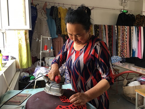 “非常感谢巴哈尔古丽成立服装合作社,她让我的生活得到了改变,因为我有残疾,出去打工人家也不收,让我很受打击。巴哈尔古丽成立服装合作社以后,首先想到的是能让我加入,亲自教我使用缝纫机的技巧,让我看到了自己的价值!工作一天能有40元左右的收入,不出村就业,既能顾到家里的农活,又能掌握一项新技能增加收入,真是太好了!”麦麦提·哈斯木感慨地说道。
