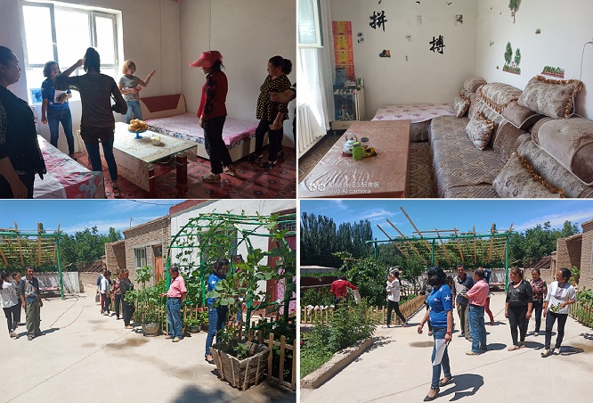 清风网讯 (拜城县妇联: 米热宛古丽•艾肯木) 为了充分发挥妇联执委委员在“美丽庭院”创建活动中的积极作用和改善农村人居环境中的主力军作用,以实际行动助力乡村振兴,倡导绿色、低碳、环保的健康生活方式, 带动更多群众参与到美丽庭院建设中来,于2019年6月26日,拜城县妇联、团委驻康其乡和谐村“访惠聚”工作队积极组织村妇联执委委员,开展卫生检查活动。各执委委员分成两个组,在工作队队员的带领下,严格按照打份标准,到挨家挨户对农民家庭室内室外改造、整洁,庭院绿化情况进行检查。