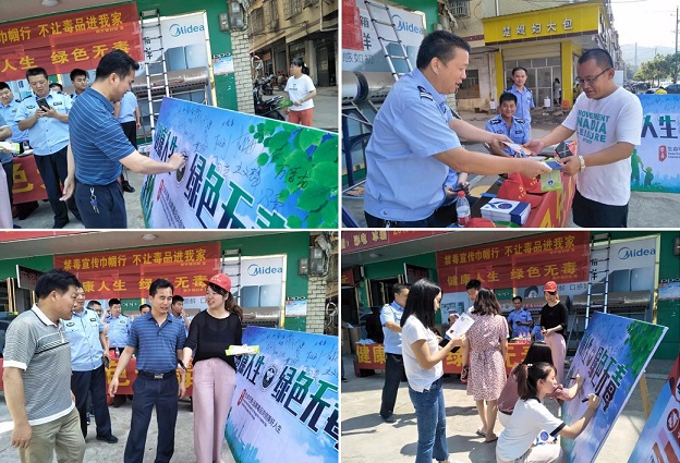 集镇街道上,该镇用展板介绍吸毒对个人、家庭、社会的巨大危害性,从常见毒品知识、禁毒的由来及历史背景进行了宣传。特别是青少年如何在生活中防范毒品进行教育,并举行了“生命可贵、远离毒品”的百人签名承诺活动。