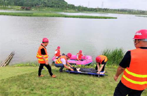 清风网讯(中交四公局:卢金山)为提高临水施工溺水事故应急处置能力,增强一线员工自救互救实战技能,6月28日上午,由中交四公局贵安新区海绵城市试点两湖一河PPP项目部牵头组织,监理、建设单位共同参与的溺水应急演练在月亮湖公园北二区成功举行。