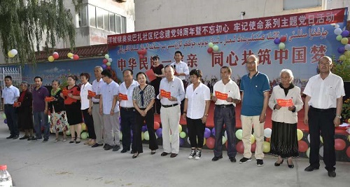 为进一步加强社区联合党总支、社区党总支党员队伍建设,发挥辖区广大党员的先锋模范作用,进一步营造党的群众路线教育实践活动氛围,在中国共产党成立98周年之际,奥依巴扎社区党总支、奥依巴扎社区共驻共建单位举办了此次活动。