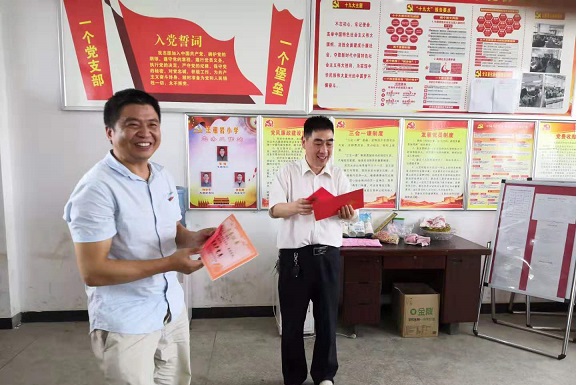 这次庆祝活动丰富多彩,全体党员重温入党誓词,为深入开展“不忘初心,牢记使命”主题教育活动拉开了序幕。接着,党支部书记张炜组织大家学习《中国共产党支部工作条例》,并对前段时间的党支部工作进行了简要总结,对未来的工作提出了具体要求。他带领大家回顾了中国共产党跨过漫长的98年,经过历史考验和岁月洗礼,成长为世界上第一大政党的光辉历程,激励全体党员同志“不忘初心永葆本色”“学习先锋争做表率”。
