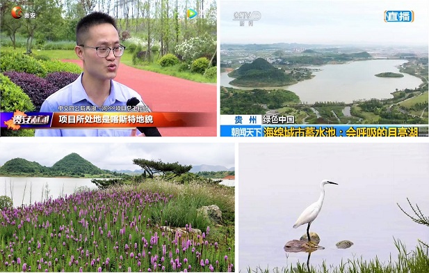 作为全国第一批海绵城市试点,贵安新区还承担着建设国家生态文明示范区的历史重任;借助这贵安新区青山环绕、绿地交融的生态优势,中交四公局牵头实施的两湖一河PPP项目巧妙地将低影响开发的海绵城市建设理念融入到月亮湖公园、星月湖公园、车田河的建设和改造中去,加强雨水资源利用和生态环境保护,恢复城市的呼吸功能,努力打造全国海绵城市“贵安样本”。在现场采访中,中交四公局两湖一河PPP项目建设代表告诉记者:“项目所处地是喀斯特地貌,地表是红粘土,透水性能很差,所以我们在进行海绵城市建设过程当中就是对一些局部地方进行换填,使土壤的渗透性有所加强。”除了这些海绵“黑科技”,建设者还向记者透露:“海绵城市跟景观要高度融合,比如说生态浮岛,它在水域中间就为局部的水生动植物打造了一个栖息地,我们到公园来,能看到很多水鸟栖息在生态浮岛上面,走近一看,一群水鸟就飞了起来,就形成了人与自然和谐共生的生动的场面。”