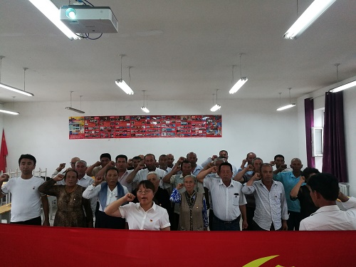 座谈上,党员们品尝新鲜水果,共享幸福时刻,他们怀着激动的心情庆祝党的生日,态度积极、畅所欲言。“我今年79岁,党龄34年,亲眼目睹了中国改革开放40年来发生了天翻地覆的变化,伟大的祖国从过去的一穷二白到今天的繁荣富强,是老一辈革命家用心血和汗水换来的。每个党员要充分发挥先锋模范作用,带领广大群众凭借国家惠民政策的东风,用勤劳的双手、智慧的大脑去开创更加美好的幸福生活。”老党员艾克坦木·艾克然木激动的说。