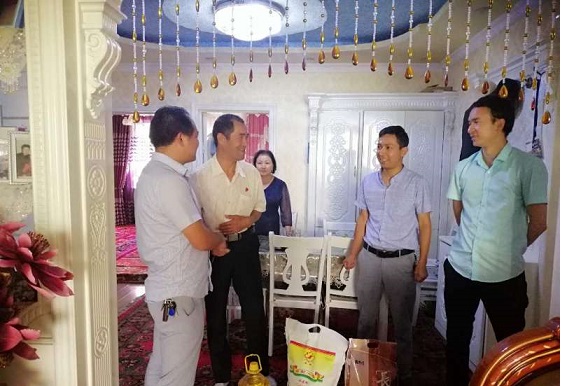 慰问活动中,访惠聚第一书记罗远江同志,一行三人来到辖区内西苑小区高龄老党员张洪福、阿巴斯•热合曼等十名优秀老党员家中开展慰问活动,他们每到一处,他们就与老党员们亲切交谈,嘘寒问暖,仔细询问家庭经济生活生产情况、身体情况以及生活中存在的问题,同时送上节日的祝福,把社区准备好的米、面和清油送到老党员的家中。并真诚的邀请优秀老党员们对社区党支部工作谈意见,建议。感谢他们为党的事业做出的贡献。一句句暖心的话语,一次次贴心的问候,让老党员们倍感温暖,优秀老党员阿巴斯•热合曼激动地说“谢谢组织的关心,感谢中国共产党,感谢政府”。