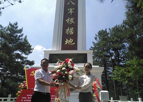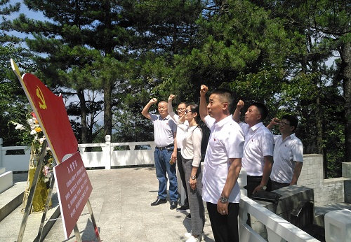 抵达红二十八军根据地纪念园后,全体党员怀着无比崇敬之情,庄严肃立在红军烈士墓前,向革命先烈敬献花篮并深深三鞠躬。党支部书记汪磊君带领大家在烈士墓前重温入党誓词:“我志愿加入中国共产党,拥护党的纲领……” 铿锵誓言久久回荡,振奋人心。