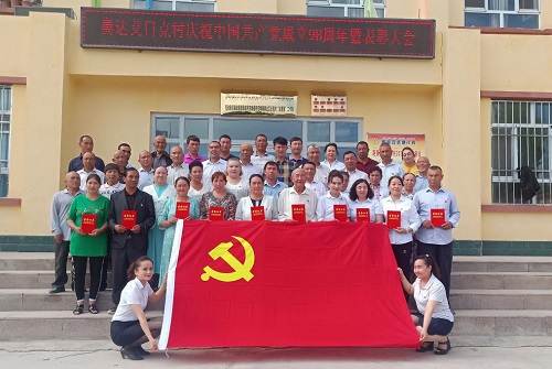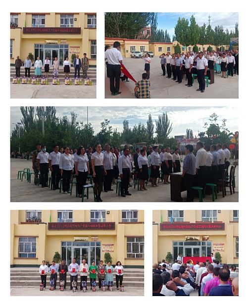 清风网讯(克州路政管理局驻村工作队:叶东海、陈涛)2019年7月1日,阿克陶镇奥达艾日克村上空国旗飘扬,党旗生辉,村党支部隆重召开“不忘初心再出发 牢记使命勇担当”庆祝建党98周年暨迎“七一”表彰庆典活动。会议由阿克陶县党委常委、阿克陶镇党委书记赵斌主持,全村各组在家党员、2019年新发展党员、村民群众和驻村干部全员参加,组织重温入党誓词、表彰农民优秀共产党员和基层干部优秀共产党员、开展“守初心担使命 平凡岗位新奉献”等演讲宣讲。