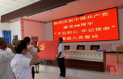第四项议程:以“喜迎建党98周年,做合格共产党员”为主题上一次党课。由第一书记关学军以“热烈庆祝建党98周年,党旗映天山”为主题上党课,结合建党98周年及中国改革开放40年的成果,围绕新疆和沙雅的变化,给党员上一次党课,教育党员干部做合格党员。