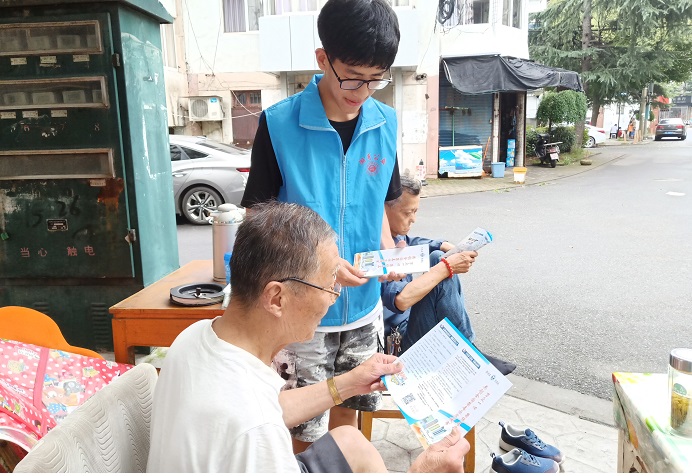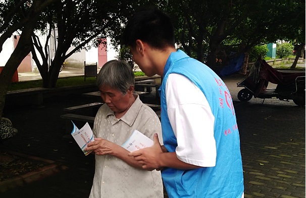 为引起居民对于艾滋病的重视,预防避免毒品带来的一系列危害,提高居民的防范预防意识,7月2日上午9时湖州师范学院商学院禁毒防艾服务团的志愿者们以健康为切入点,走访湖州市吴兴区龙泉街道大通桥社区向社区居民们宣传预防艾滋病知识。