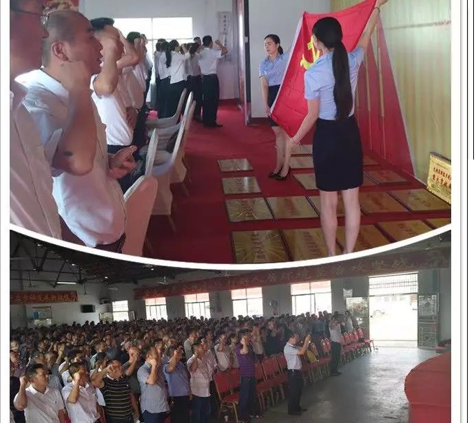 会议在庄严的国歌声中拉开序幕,新发展对象面对党旗庄严宣誓,全体党员重温入党誓词。