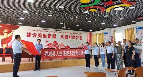 为进一步培养法院干警的奉献精神和爱国情怀,拜城县人民法院邀请了原老虎台乡骑兵连连长尼牙孜·黑牙孜进行了主题演讲,老连长尼牙孜·黑牙孜为干警们生动的讲述了老虎台乡骑兵连的往事,以及骑兵连民兵的英勇事迹,“虽然骑兵连的民兵更换了一批又一批,但是这支队伍守护祖国边疆、维护一方安宁的初心从未改变。去年经过组织部门的批准,我把手中的马鞭交给了我的儿子,我相信他也会肩负使命不断前进,为守卫祖国边疆奉献力量”,尼牙孜·黑牙孜说道。聆听老连长的精彩讲解后,法院党员干警与老连长尼牙孜·黑牙孜一同面对党旗宣誓,重温了入党誓词。