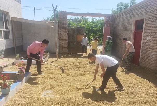 拜城县住建局驻克孜尔乡拜格其买里斯村第一书记、工作队队长胡清说:“现在冬麦已经到了收割的时候,我们工作队和村干部第一时间组成志愿服务队,帮助缺少劳动力的家庭收割冬麦,并帮助他们复播玉米,同时在劳动中对村民开展相关惠民政策宣传,思想引导等工作,在实际行动中做实做细群众工作。村里的党员、团员帮助村民收割小麦,不仅进一步树立了“想群众所想,急群众所急”的服务意识,发挥了先锋模范作用,增强了做好群众工作的能力,还拉近了与群众的距离,凝聚了民心。”
