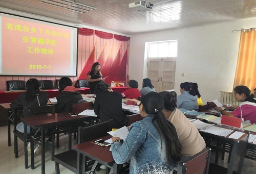 2019年7月7日,老虎台乡举办全乡的药具知识培训。乡计生办药具工作负责人员热孜宛古丽对全乡的计生专干进行了药具知识培训,向全乡计生专干展示了各种药具的使用说明和注意事项。