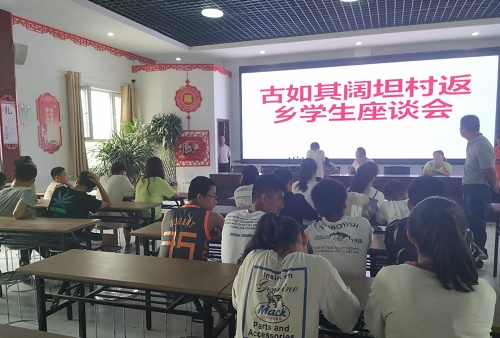 清风网讯(县胡杨林管理站驻村工作队 :海热古丽)为扎实做好返乡学生的服务教育管理工作,7月8日,沙雅县胡杨林管理站驻古勒巴格镇古如其阔坦村“访惠聚”工作队组织召开返乡学生座谈会。共20名学生参加了此次座谈会。