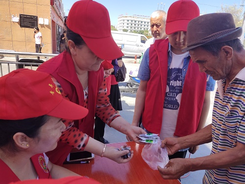 我是红衣志愿者—7月8日下午,一朵朵“小花”、一个个“小鲜肉”们变身小红帽志愿者,来到艾德莱斯小区门前当起引导员。有的引导居民到艾德莱斯门前免费测量血压,有的协助人民医院医务人员发放藿香正气水、牛黄解毒片、红霉素软膏等免费药品。帕孜来提·艾合买提满心欢喜的说:“很开心参加这样的志愿者活动,觉得能够帮助别人很开心。”