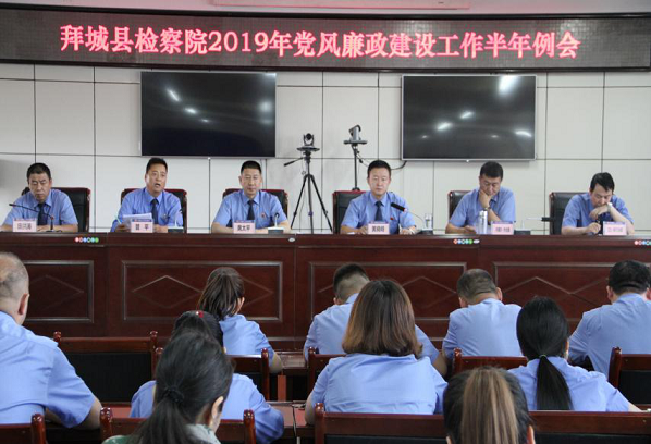 清风网讯(通讯员 荣建军)7月9日上午,拜城县人民检察院召开2019年党风廉政建设工作半年例会,听取了各部门开展党风廉政建设工作开展的情况,全面总结分析了主要业务工作运行情况,有针对性地对下半年各项工作进行安排部署。