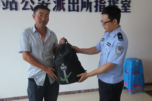 7月4日20时50分许,锡林浩特铁路公安处查布嘎车站派出所民警在执勤过程中发现候车室内有一黑色挎包遗失在座椅上,通过车站广播寻找失主未果后,民警分析此时段正值T302次旅客列车检票乘车期间,极有可能是该车次旅客遗失,民警立即赶往站台进行问询,并成功找到失主戚某,经核实无误后将物品交还。