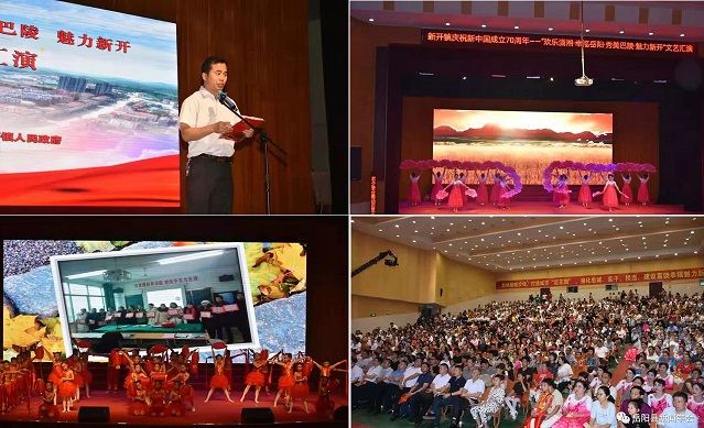 活动以庆祝新中国成立七十周年为主题,以新开镇乡村振兴大型宣传片为序,在舞蹈《中国红》拉开帷幕。从追梦新开、振兴新开、文明新开、美丽新开四个篇章分别展示了该镇近年来的巨大变化,原创戏曲《回朱砂》、《小村大爱》完美演绎了在当前乡村振兴攻坚行动中,以龙湾村“打擂台”为原形,村官与村干部表现出来的对村级建设的深厚感情。原创小品《喜事新办》、快板《国泰民安谱新篇》表达了对扫黑除恶、禁炮限塑、精准扶贫等中心工作的拥护与赞美。特别是镇机关干部的合唱《江山》体现了领导干部团结一心的精神风貌和服务于民的深厚情怀。晚会在中心学校带来的《远方的客人请你留下来》合唱中结束,让人回味无穷。晚会从不同角度反映了新开镇的巨大变化与干群同心共建家园的良好精神面貌。