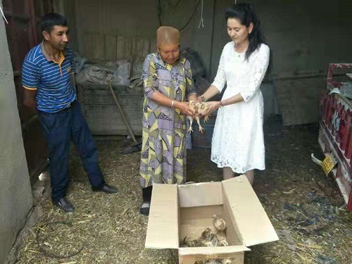 清风网讯(拜城县市场监督管理局:尹安来 ) “阿提坎姆大姐,这是我为你准备的30只鸡苗,今年的脱贫攻坚路上咱们再努力,争取打赢脱贫攻坚战。”工作队副队长古海尔克孜·阿尤蒲对康其乡欧勒旁村贫困户阿提坎姆·斯迪克说道,接过鸡苗的阿提坎姆感动的直说谢谢,并保证说今年一定要努力工作,不辜负工作队的帮助和希望。