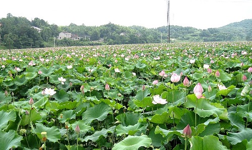 清风网邵阳讯(陈家坊镇:刘志坚)7月11日上午,笔者来到新邵县陈家坊镇江村太空莲种植基地,只见基地里片片莲叶随风飘舞,朵朵荷花婀娜多姿,很多村民在这里一边赏花,一边用手机拍照发到朋友圈。基地负责人李喜林介绍,2017年,他通过租赁农户田地和雇请贫困户帮工的形式,大规模发展太空莲种植,去年总产值达到60多万元,收益比种植传统农作物强多了。这仅是该村发展特色产业助力脱贫攻坚的一个缩影。