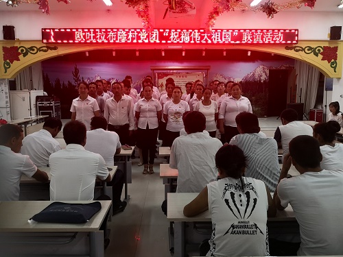 清风网讯(自治区烟草专卖局驻村工作队:彭加录 )今年将迎来中华人民共和国70周年华诞,为增强基层党组织凝聚力,提升党员意识和爱国情怀,近日,拜城县布隆乡欧吐拉布隆村党支部、“访惠聚”工作队组织开展“祝福伟大祖国”主题党日活动,全村党员干部、入党积极分子、返乡大学生80余人参与了本次主题党日活动。