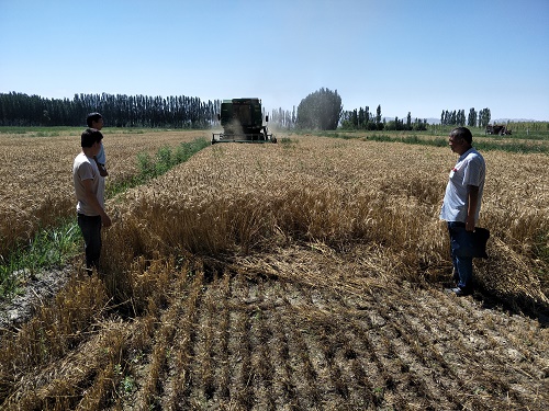 “彭队长,季村长您们快来帮我看看我家地里的麦子产量能达多少?”1组村民库尔班·肉孜看着地里沉甸甸的麦子欢快的说道。正在田间地头和康拜因老板交涉价格的工作队员们和科技副村长季学忠痛快的答应了。在大家的分工合作之下,有的数着株数,有的数麦穗,不一会儿就测算出了库尔班·肉孜家的麦子的产量,当得知自家的小麦产量能达到450公斤时,库尔班·肉孜高兴坏了,他说:“今天天气不好,前期麦子长势差,我以为产量会给很低,没想到还能达到这个产量,这多亏工作队员平时给我们进行技术指导,不仅没让我家的麦子产量降低,还帮着我们减少20元/亩的收割费用,真是帮了我们家大忙了,太感谢工作队了!”