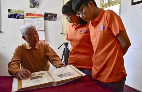 (杨老在为志愿者讲述家中老照片背后的故事)