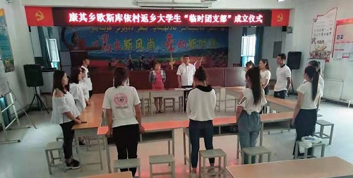 清风网讯(康其乡人民政府:古丽吉娜提·卡合尔 阿热孜古丽·苏来曼 )康其乡欧斯库衣村为了扎实做好返乡学生暑期服务管理工作,引导大家参加各类志愿服务活动、红领巾小课堂活动,确保团组织有效广泛的覆盖团员青年,开展团的活动,发挥团员作用,为团支部工作提供坚强组织保证,专门为返乡大学生成立了临时团支部。