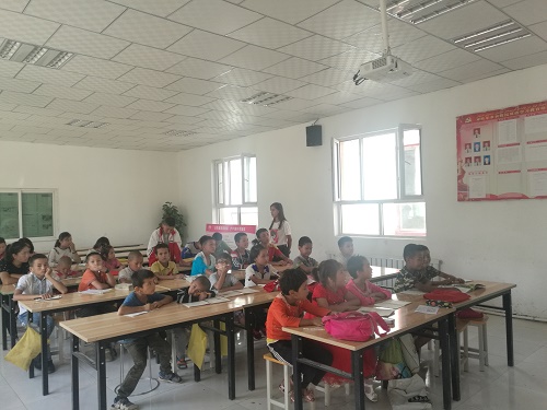 帕提古丽说,补习班主要是把学生们组织起来强化学习语言,标准他们的发音。同时孩子们也自己做暑假作业,不会的题目由他们给予辅导。同时,他们也会给学生们教英语、为他们讲述外面世界的见闻,带孩子们做活动,传递文明新风尚等内容。