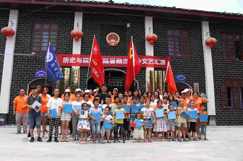 清风网讯(翟帅 汤晓晨 黄泽龙 汪蓓蕾)工作的联系称之为组织,情感的联系才可谓“家”。很有幸能与贵州师范大学的小伙伴学习交流,切实体会他们学院所提倡的“家”文化。短短几天,湖州师范学院商学院的“浙青春,正黔行”暑期社会实践团队的志愿者们就与贵州师范大学历史与政治学院“三下乡”团队同学们相互熟悉,大家萍水相逢却能在短短的几天时间内放下戒备,一起嬉戏、工作、交流,并共同在石阡县中坝街道开展“三下乡文艺汇演”。这种互相交流学习的方式让团队建设的更好,拉进了心与心之间的距离,让彼此切实地融入,使人感受到团队所凝聚在一起的力量。