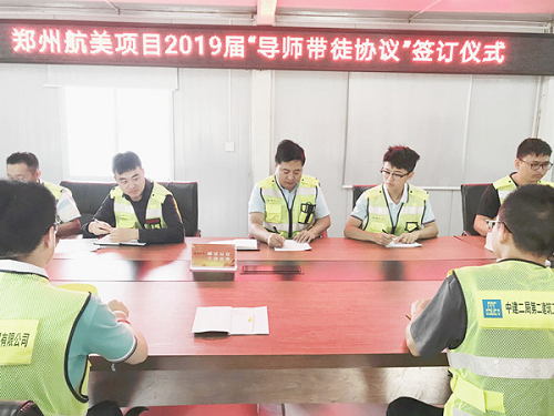 清风网讯(西北分公司)7月17日上午,西北分公司郑州航美国际智慧城项目部举行2019届“导师带徒协议”仪式。签订仪式由行政总监林涛主持,项目经理杨猴栓、各部门导师及2019届新入职员工参加。
