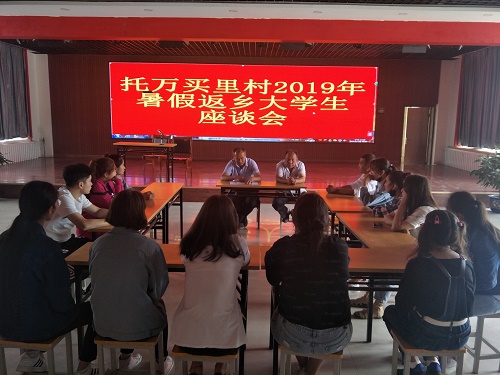 会议由托万买里村包村领导殷强同志主持,首先传达了上级下发的有关暑假期间返乡大学生的教育管理的文件精神,希望返乡大学生们积极参与村委会安排的各项活动,利用所学知识,充分发挥各自的优势,做好党的政策宣传员,当好民族团结的实践者和社会稳定的维护者,为促进民族团结和社会稳定发挥积极作用。