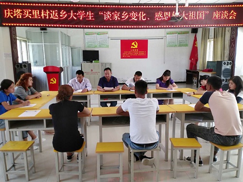 这是当日庆塔买里村组织返乡大学生开展的一场有声有色社会实践活动,大家用亲身经历谈家乡变化,抒发对家乡的热爱之情时所说的一席话。