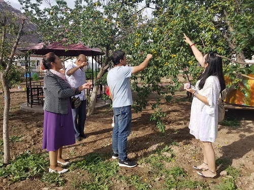 随着新农村建设,苏杭村的村容村貌焕然一新,道路两旁洁白的围墙,整洁的地面,带着浓浓中国风的太阳能路灯,整齐的围栏,与一座座富民安居房交相辉映,勾勒出了一幅和谐的新农村画面。在苏杭村村民努尔冬·司马义家中,一群游客正在院中忙着拍照、采摘杏子,夫妻二人也正在为客人们准备食物。自从努尔冬·司马义家中进行民宿改造以来,每天前来游玩的游客都是络绎不绝,家中的生活也变快了节奏。“现在每天都好忙,有时候一天就有几十人来游玩,我们早上很早就要起来准备东西,一直到晚上11点才能休息,但是我们非常高兴,因为只有忙碌我们的生活才会越来越好。”苏杭村村民努尔冬·司马义说。