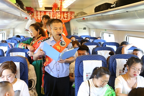 禁毒宣传进车厢,旨在利用列车这一“流动社会”的辐射效应,进一步扩大禁毒宣传教育覆盖面。此次活动共发放宣传品1300余份,受教育旅客1300余人次。