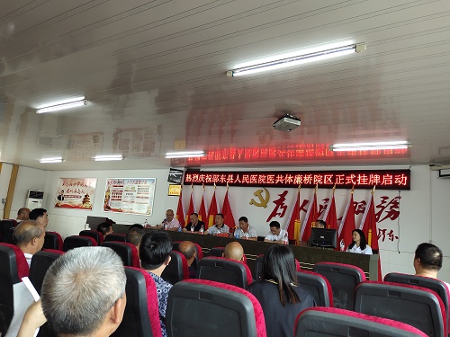 此次医共体挂牌启动由县人民医院牵头,把乡村医疗联合起来,重点是以县级医院为龙头,乡镇卫生院为枢纽,村卫生室为基础的一体化管理,与乡村一体化管理有效衔接,充分发挥县级医院的城乡纽带作用和县域龙头作用,形成县乡村三级医疗卫生机构分工协作机制,构建三级联动的县域医疗服务体系。邵东县人民医院医共体廉桥院区正式挂牌启动,是推动技术骨干下沉,加快基层人才培养,聚焦廉桥医疗卫生领域关键短板,不断推进廉桥医改工作,为廉桥中心卫生院创造良好的健康环境,也意味着我县在深化医疗体制改革方面开启了又一次新的探索,更好地满足人民群众卫生健康需求,为推进“健康邵东”建设做出新的贡献。县卫健局副局长申开荣、县人民医院院长周少峰及班子成员、廉桥中心卫生院全体职工、廉桥辖区各村村医及部分村支部书记、县脑卒中中心“红手环”志愿者、县“胸痛中心”志愿者参加,会议由廉桥镇党委陈健平主持会议。