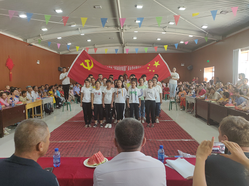 组织返乡学生、民间艺人精心编排精彩节目,共同庆祝中华人民共和国成立70周年。各族干部群众走上舞台,在喜庆欢乐的音乐中翩翩起舞,欢呼声、歌声汇成了一片欢乐的海洋。