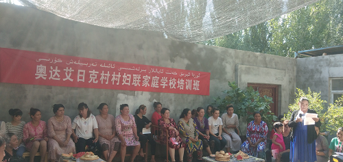 清风网讯(阿克陶镇奥达艾日克村:肯巴提 ·巴合提亚 叶东海)阿克陶镇奥达艾日克村在1组艾买提江·艾力木老乡的家开妇女大会,共有78人参加。此次妇女大会主要围绕要加强学习,不断提升村妇联的自身素质,加强法制宣传加大维权,切实维护妇女儿童的根本利益等方面进行宣传。阿衣夏木古·萨吾提就“做有担当的中国公民”进行发声亮剑,表达了自觉抵制“三股势力”,不做“两面人”,感党恩、跟党走,珍惜幸福生活的决心和信心。月日古丽·阿巴拜克就“党的恩情说不尽”宣讲感恩,她这样说道:我们要学会感恩,感恩我们的党和国家,感恩帮助我们的干部,感恩我们的第一书记,因为人只有懂得感恩才能做到知恩图报,才能用自己的行动传递社会正能量,才能使自己成为一个合格的社会公民。