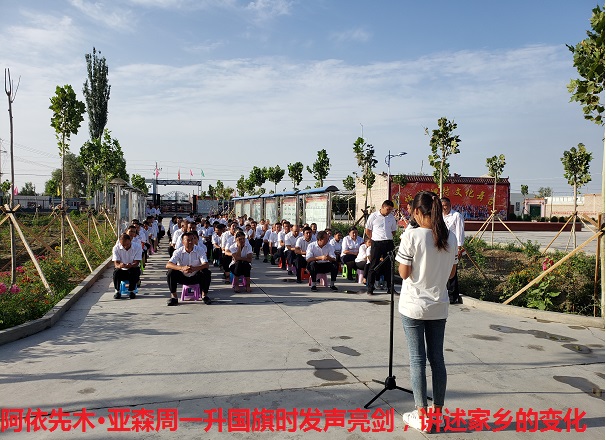 “在党的领导下,我们的家乡面貌发生了翻天覆地的变化,一排排整齐的新房、一条条宽阔的马路、一个个幸福的笑容,村卫生室、活动室、幼儿园等基础设施都有了很大的提升,这些变化都源于党的好政策。”,在新疆职业技术学院学习的大学生阿依先木·亚生向群众集中宣讲时说。