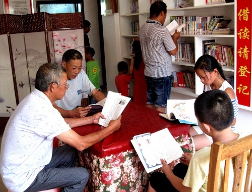清风网邵阳讯(陈家坊镇:刘志坚)7月26日,天气炎热,新邵县陈家坊镇洪庙村的农家书屋里,几位村民和学生正在认真地翻阅着自己喜欢的读书籍。据悉,近年洪庙村将农家书屋建设作为提升村民整体素质、丰富群众文化生活的惠民工程来抓,目前, 该村农家书屋内包括政治经济、科学文化、生活百科、农业科技、致富信息、医疗保健、少儿读物等各类书籍近4000册 ,农家书屋真正成了村民们增收致富的“加油站”。