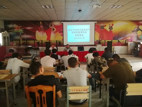 清风网讯(拜城县税务局驻村工作队:李智军)7月31日,拜城县税务局驻亚吐尔乡英兰干村工作队组织全体党员干部学习张富清同志先进事迹专题会议,会议由工作队队长、第一书记艾买尔·吐尔迪主持,全体工作队员、乡下派干部、村干部参加会议。