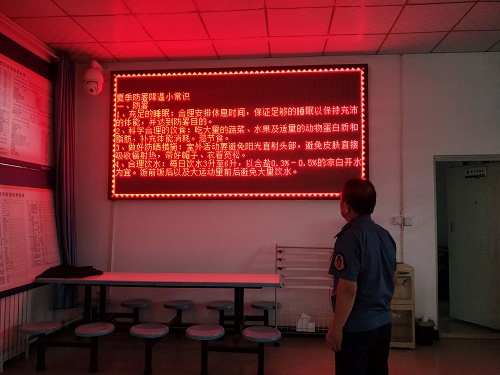 高温天气来临,为切实保障单位职工的身体健康,避免中暑现象发生,新和路政管理局坚持以人为本,广泛开展防暑降温宣传教育活动,增强职工的自救和互救能力。