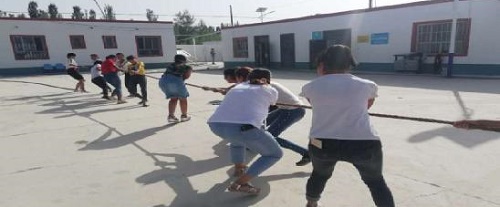 近日大宛其阿热恰特村组织返乡大学生参加拔河比赛,听到裁判员一声清脆的哨响,红蓝双方队员都死死地攥紧绳子,红方队员在队长的带领下全体队员齐心协力双脚恨不得深深的钉进地里,眼睛瞪的大大的,脸憋得通红,使出了全身的力气,互不相让。