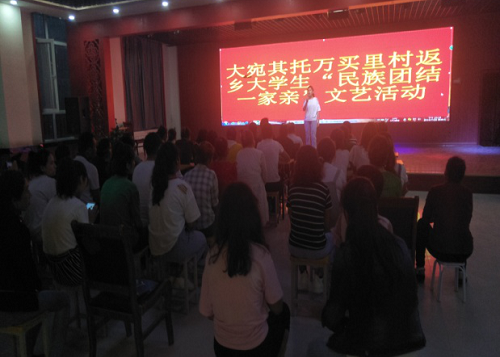 清风网讯(大宛其管委会:贾文斌)2019年7月20日晚10点整拜城县大宛其管委会托万买里村举办了一场丰富精彩的“民族团结一家亲”暨“返乡大学生”联谊晚会,整场节目由17名返乡大学生自编、自导、自演,为现场观看节目的70余名群众带来了一场丰富多彩的 文化盛宴。