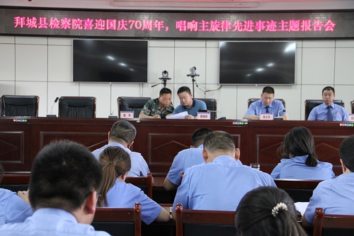 清风网讯(拜城县人民检察院政工科:王璐)一个有希望的民族不能没有英雄,一个有前途的国家不能没有先锋。拜城县人民检察院于2019年2019年7月30日下午组织全体检察干警围绕“喜迎国庆70周年·唱响主旋律”先进事迹主题报告会活动开展学习张富清同志的先进事迹。张富清的伟岸,不止在少年从戎时屡立战功,也在中年转业后恪尽职守,还在晚年离休间奋进不息。