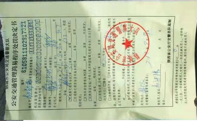 下午,男人拉着司机去了交警队,让司机在门外等,自己去“说事”,男人从交警队出来告诉司机,该私给的私给了,该公缴的他缴了,让司机给他1500元,司机给男人用微信转了帐,跟着男人在交警违法处理大厅一张简易处罚单上签了名字,随后车被放行!