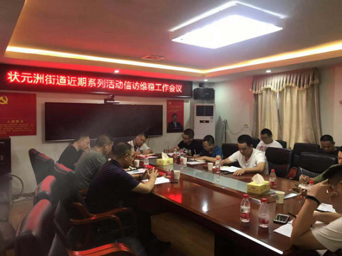 27日下午,状元洲街道迅速召开市“两个活动”期间信访维稳工作专题会议,研究制定特防期工作方案,要求各社区结合本地实际,掌握和分析研判信访维稳形势。工作人员24小时保持通讯畅通,正确运用法治思维和法治手段,依法处置和妥善化解矛盾冲突,为“两个活动”顺利召开营造良好的社会环境,切实做到“发现得早、稳控得住、化解得了、处理得好”。