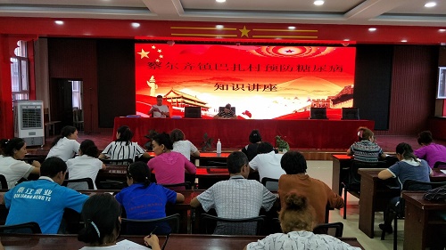 清风网讯(地区市场监督管理局驻村工作队:田磊)为提高老百姓的健康意识,了解糖尿病的相关知识,提倡健康生活,2019年8月6日,察尔齐镇卫生院医生在巴扎村村民活动中心开展“糖尿病防治知识讲座”,200余名群众参加了此次活动。
